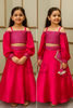 - Hot pink sequin work blouse with unique style satin crape lehenga