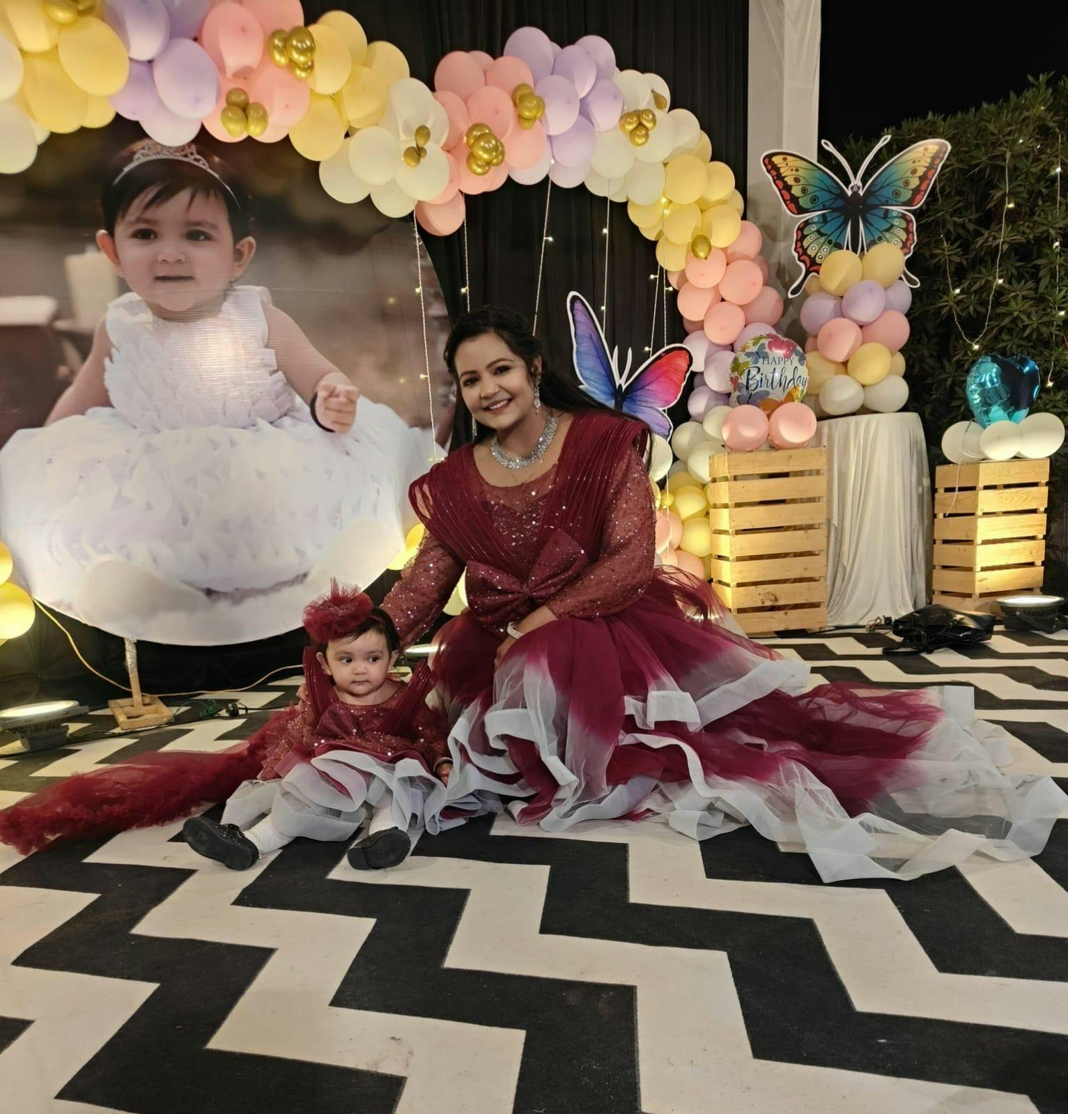 Wine and grey gown Twinning For Mother & Daughter (2 Pcs Combo)