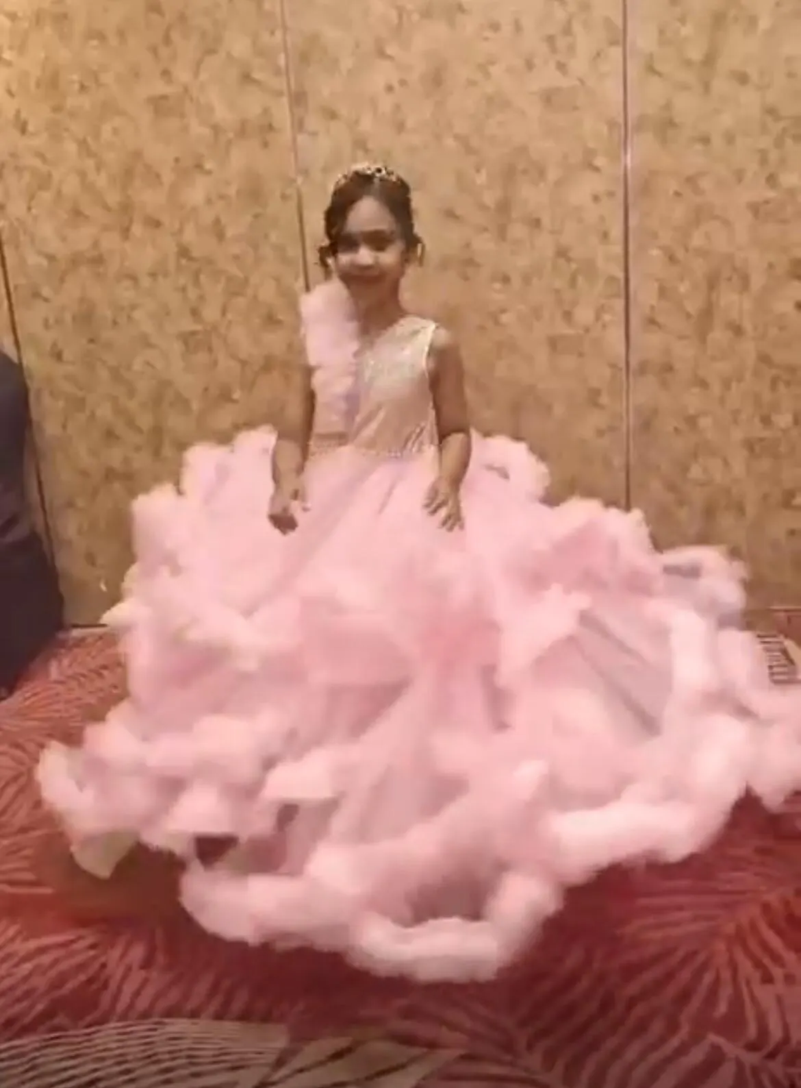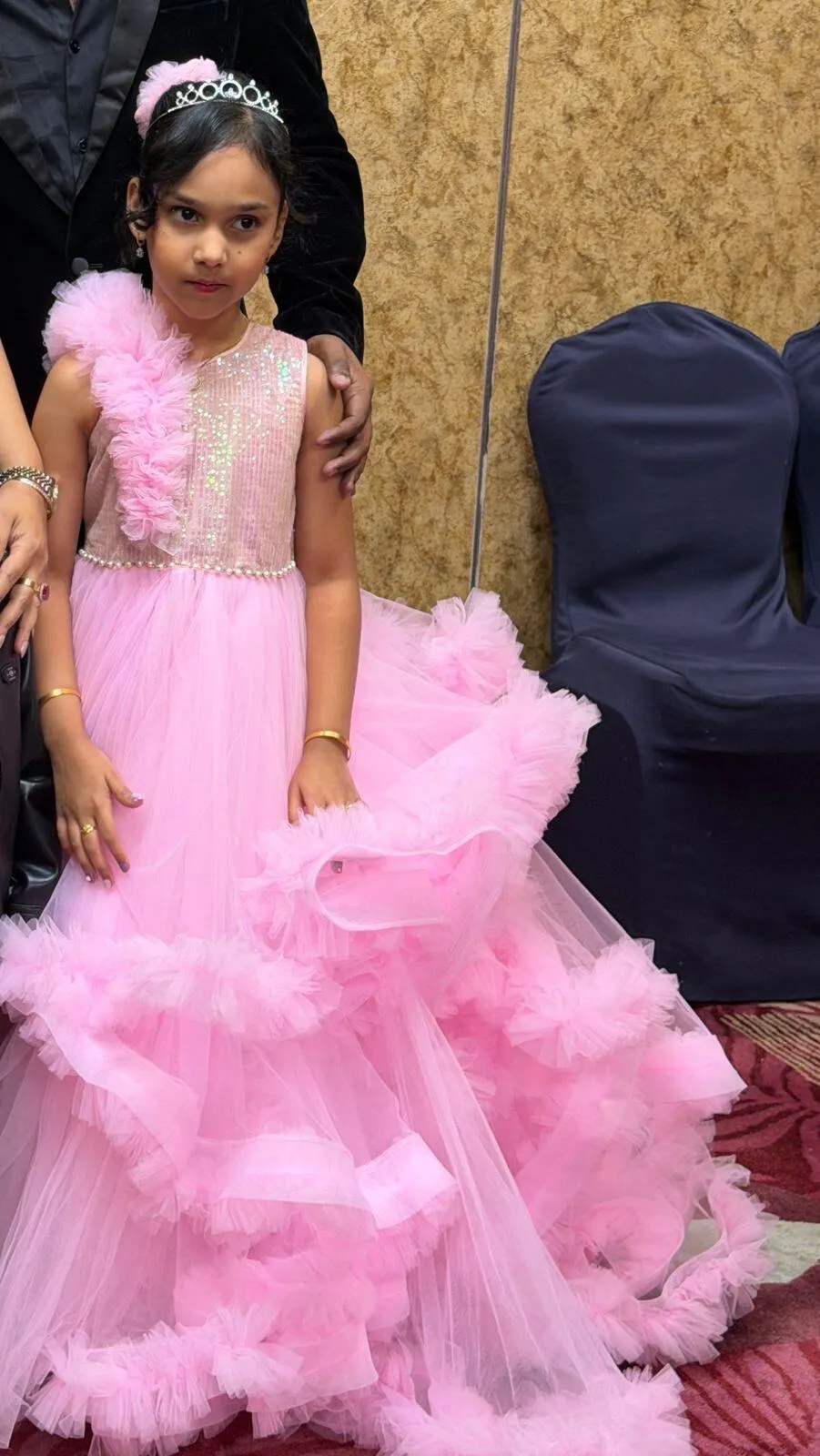 - sequin baby pink full frill gown
